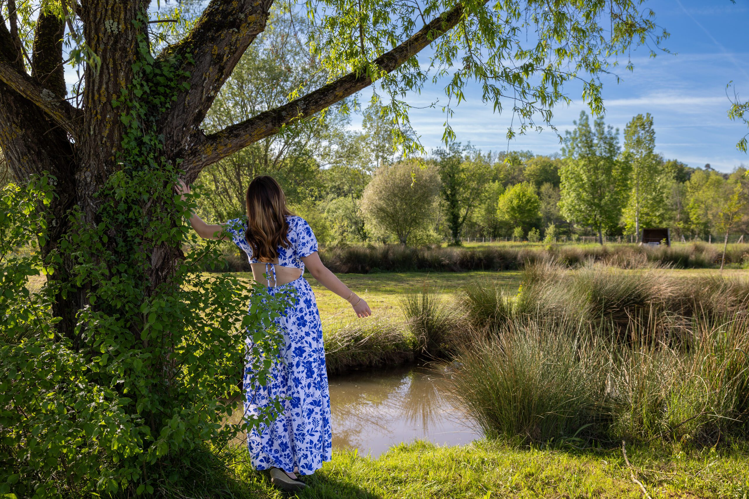 Nous avons eu un magnifique soleil ce week-end-là, en avril. C’était probablement le seul week-end où nous avons eu la chance de voir un si beau soleil. J’ai pris mon appareil photo et nous sommes parties avec Emelyne et Agathe pour deux heures de shooting dans notre campagne périgourdine. C’était l’occasion parfaite pour capturer la beauté de la nature en plein air et profiter d’une journée ensoleillée.